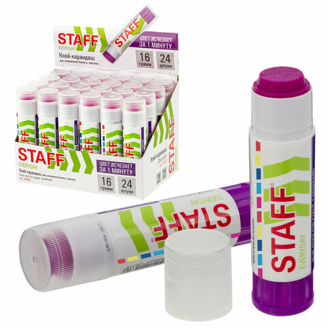 Клей-карандаш STAFF EVERYDAY, 16 г, обесцвечивающийся после высыхания, 226620