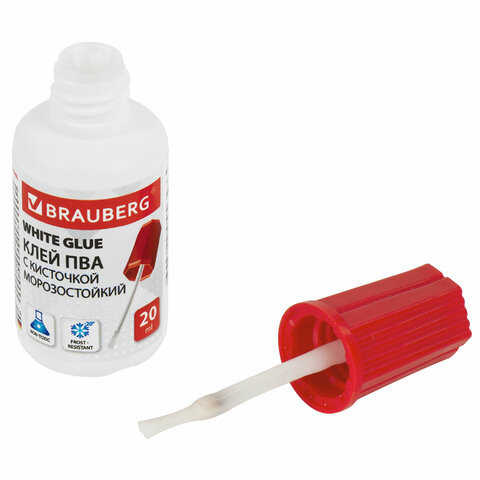 Клей ПВА BRAUBERG, 20 г, с кисточкой, морозостойкий, 222875