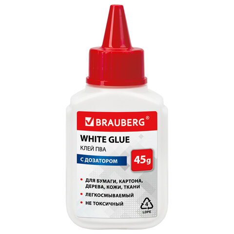 Клей ПВА BRAUBERG предназначен для склеивания бумаги, картона, фотографий, дерева и кожи.