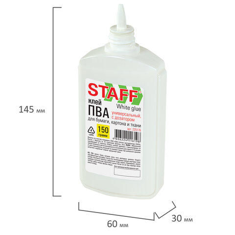Клей ПВА STAFF EVERYDAY, 150 г, с дозатором, 225176
