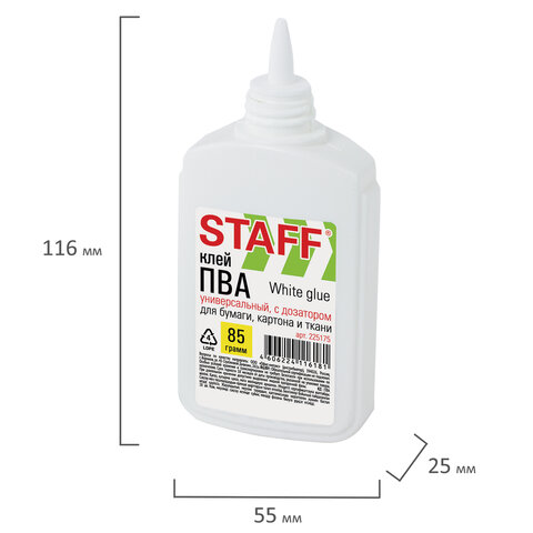 Клей ПВА STAFF применяется для склеивания бумаги, картона, фотографий, дерева.