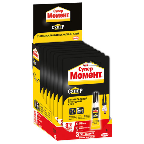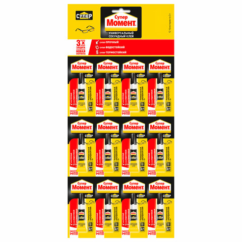 Клей моментальный Супер МОМЕНТ, 3 г, отрывная мультикарта, 608976