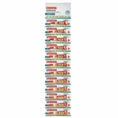 Клей моментальный (суперклей) BRAUBERG, 3 г, ПРОЧНЫЙ, отрывная мультикарта, 605566