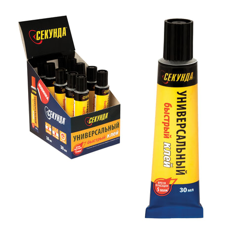 Клей универсальный СЕКУНДА "5 МИНУТ", 30 мл, в шоу-боксе, 403-197