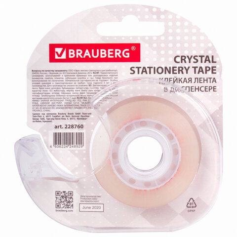 Канцелярская клейкая лента в компактном диспенсере BRAUBERG классической формы. Разработаны специально для канцелярских нужд. Широко используются в бытовой, банковской и офисной сфере.