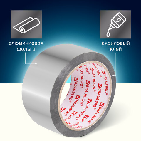 Клейкая АЛЮМИНИЕВАЯ лента BRAUBERG предназначена для ремонтных, монтажных и теплоизоляционных работ, соединения деталей с металлическим покрытием. Обеспечивает надежную теплоизоляцию при герметизации стыков и швов.