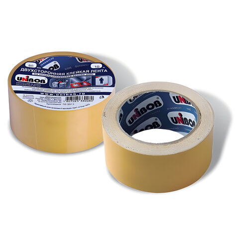 Клейкая двухсторонняя лента 50 мм х 10 м, ПОЛИПРОПИЛЕНОВАЯ ОСНОВА, UNIBOB, 28211