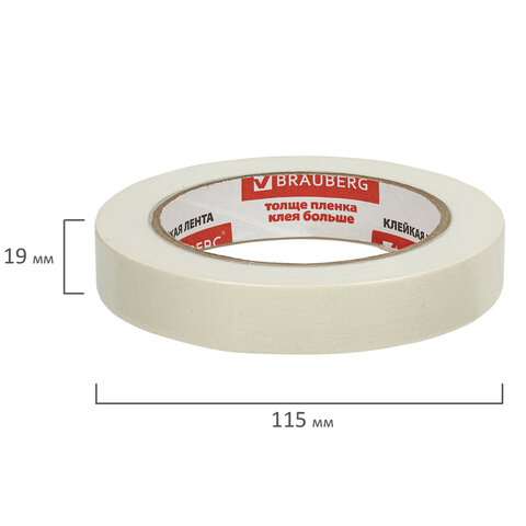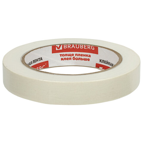 Клейкая лента малярная креппированная 19 мм х 50 м (реальная длина!), профессиональная, BRAUBERG, 228085