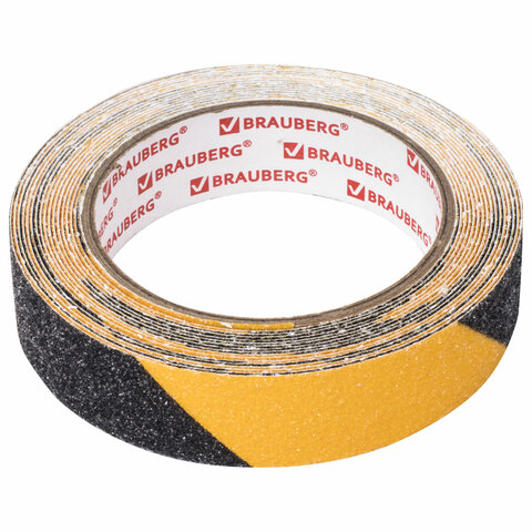 Клейкая ПРОТИВОСКОЛЬЗЯЩАЯ зернистая лента 25 мм х 5 м, ЧЕРНО-ЖЕЛТАЯ, основа ПВХ, BRAUBERG, 606773