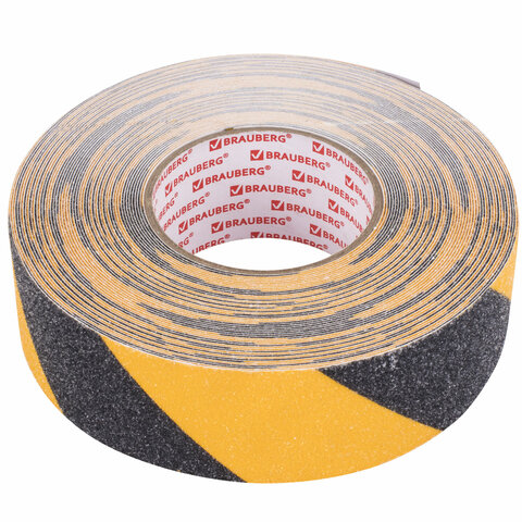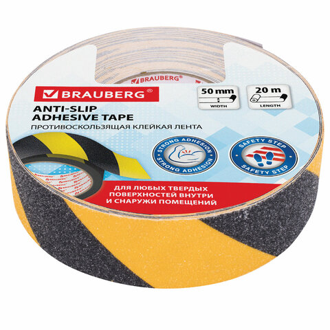 Клейкая ПРОТИВОСКОЛЬЗЯЩАЯ зернистая лента BRAUBERG предназначена для предотвращения ситуаций, связанных с несчастными случаями из-за проскальзывания на любых твердых поверхностях внутри и снаружи помещений.