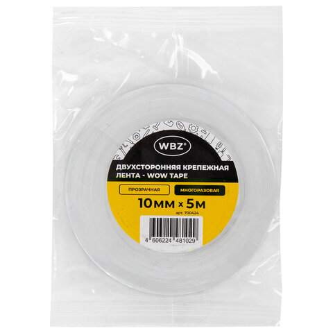 Многоразовая двухсторонняя прозрачная крепежная лента, скотч NANO tape, 5 м x 1 см, толщина 1 мм, WBZ (ВБЗ), 700424