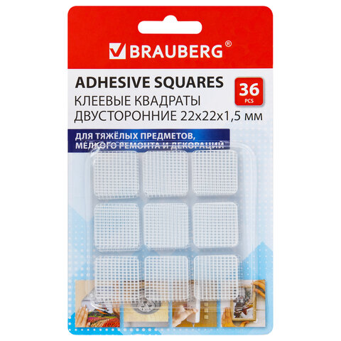 Клеевые квадраты двусторонние BRAUBERG применяется для фиксации предметов и крепежа к различным типам поверхностей, в том числе прозрачным.