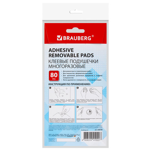 Уникальные клеевые многоразовые подушечки BRAUBERG предназначены для быстрого и четкого крепления бумаги, постеров и других легких предметов практически к большинству поверхностей (металл, стекло, пластик, текстиль, дерево и т.п.).