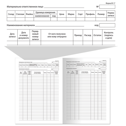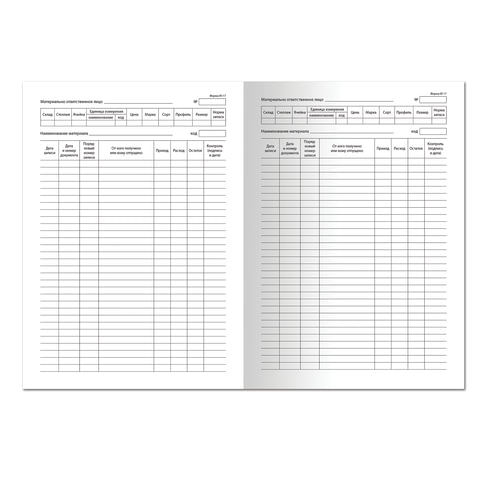 Книга складского учета материалов форма М-17, 48 л., картон, блок офсет, А4 198х278 мм, STAFF, 130191