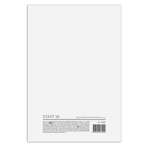 Книга складского учета материалов STAFF формы М-17 оформлена в соответствии с правилами бухгалтерского и управленческого учета. Отличается высоким качеством обложки и внутреннего блока.