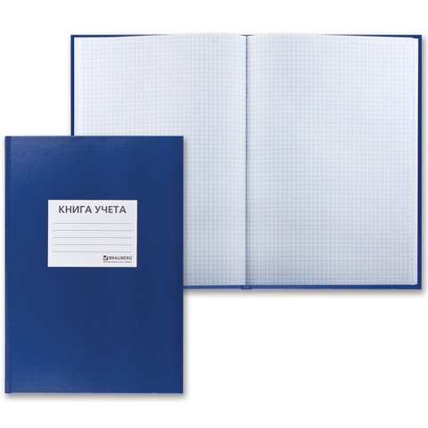 Книга учета 144 л., клетка, твердая, бумвинил, офсет, наклейка, А4 200х290 мм, BRAUBERG, синий, 130142