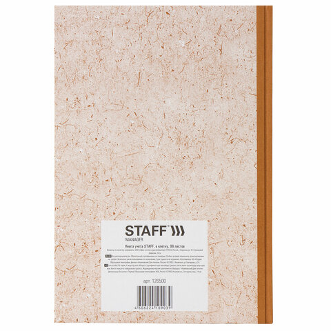 Книга учета 96 л., клетка, твердая, крафт, типографский блок, А4 200х290 мм, STAFF, 126500