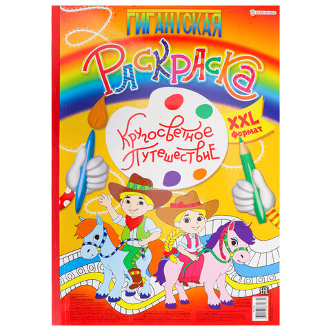 Книжка-раскраска ГИГАНТСКАЯ, КРУГОСВЕТНОЕ ПУТЕШЕСТВИЕ, 300х430 мм, 40 страниц, BK, Р-8166