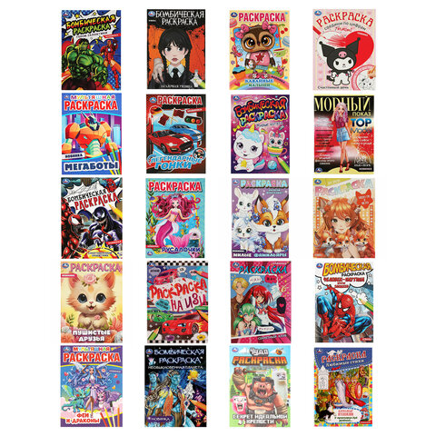 Книжка-раскраска "ПОПУЛЯРНЫЕ СЮЖЕТЫ" АССОРТИ, 214х290 мм, 16 страниц, "УМКА"