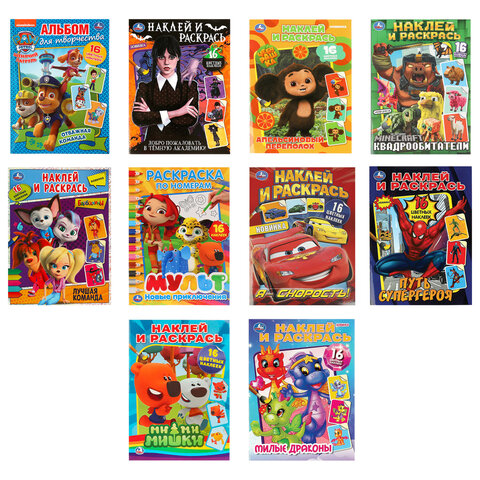 Раскраска с наклейками, АССОРТИ, А4, 214х290 мм, 16 стр., 16 наклеек, УМКА
