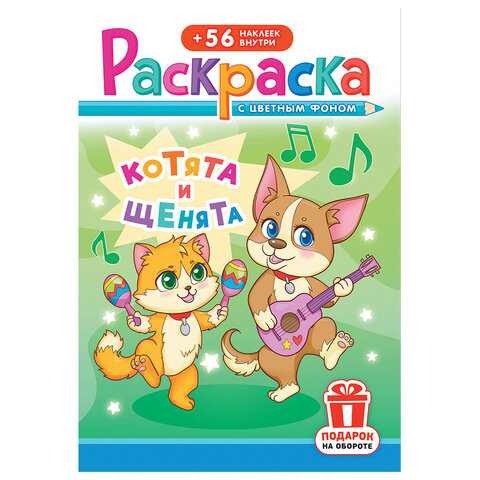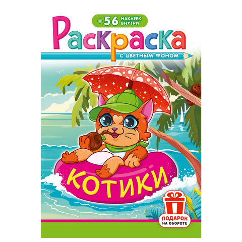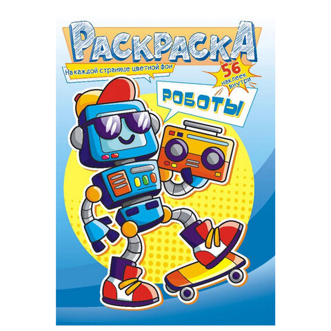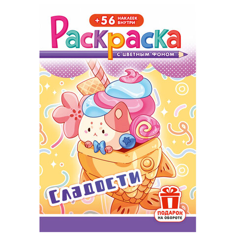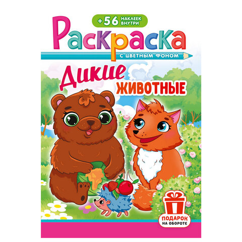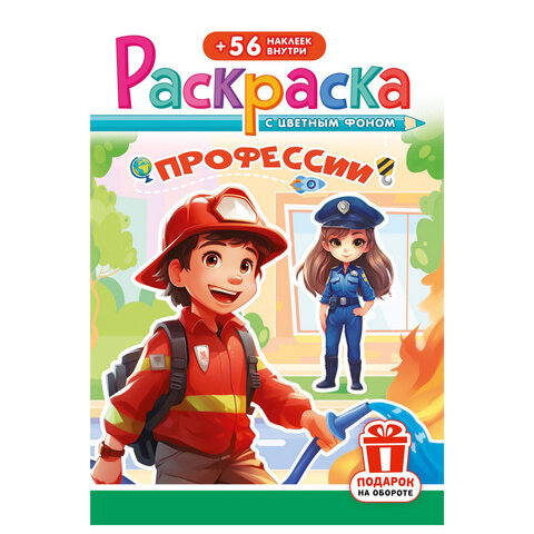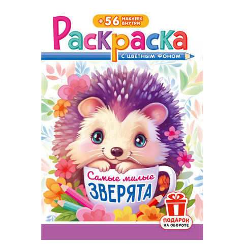 Откройте для ребёнка новый уровень творчества с этой необычной раскраской, где каждая страница уже имеет красочный фон, а в подарок идёт целых 56 ярких наклеек!