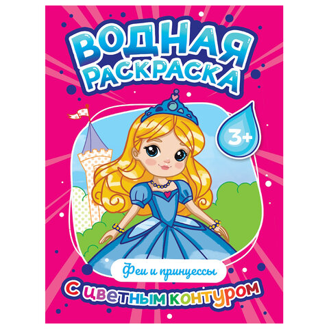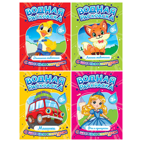 Раскраска водная с цветным контуром, 195х276 мм, 16 стр., АССОРТИ, ПП