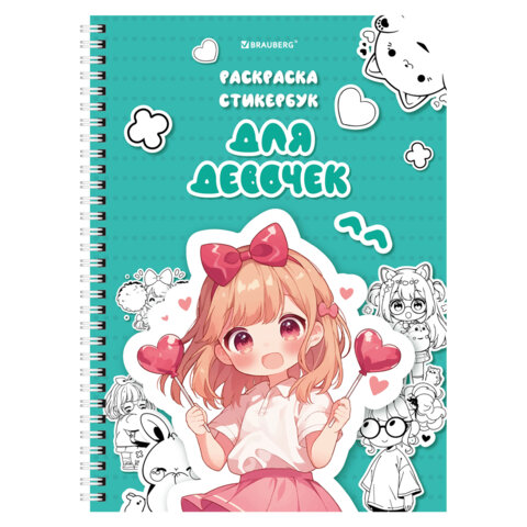 Стикербук РАСКРАСЬ И НАКЛЕЙ А5, 16 листов, 100 стикеров, на гребне, BRAUBERG, "Для девочек", 666049