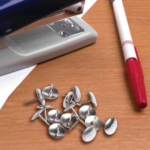 Кнопки канцелярские BRAUBERG используются для крепления бумаги на пробковые и фетровые доски, а также на другие поверхности.