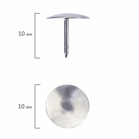 Кнопки канцелярские BRAUBERG, металлические, серебристые, 10 мм, 50 шт., в картонной коробке, 220553