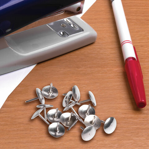 Кнопки канцелярские STAFF "Manager", металлические, никелированные, 10 мм, 50 шт., в картонной коробке, 225286