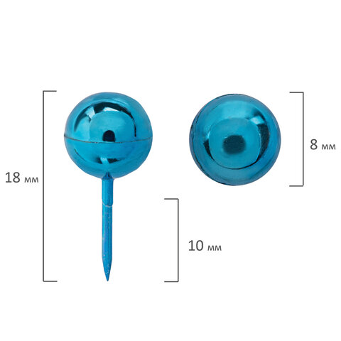 Силовые кнопки-гвоздики BRAUBERG METALLIC, цвет ассорти металлик (шарики), 50 штук, 10 мм, 272757