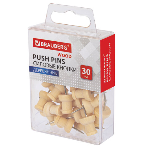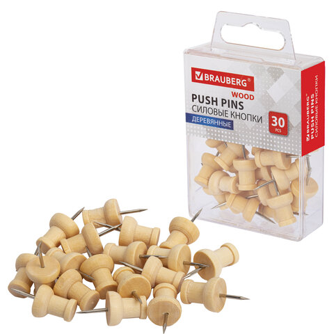 Силовые кнопки-гвоздики BRAUBERG WOOD, деревянные, 30 штук, 10 мм, 272759