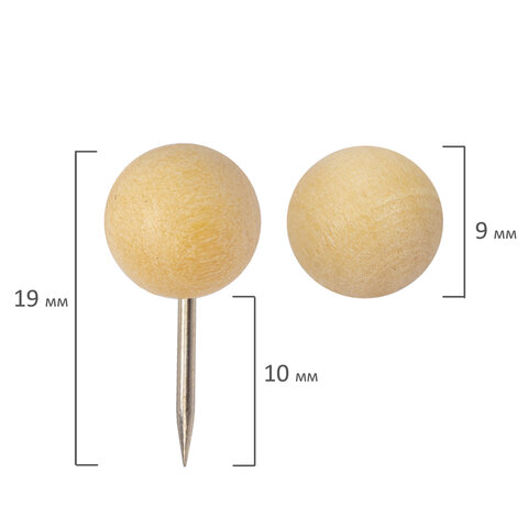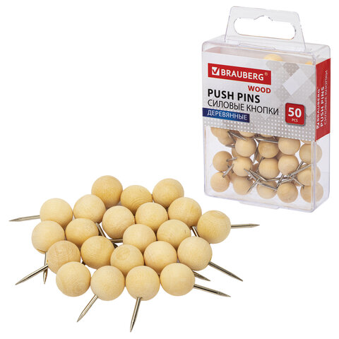 Силовые кнопки-гвоздики BRAUBERG WOOD, деревянные (шарики), 50 штук, 10 мм, 272761
