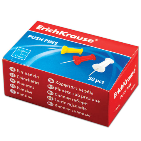 Канцелярские кнопки ERICH KRAUSE надежно крепят бумагу на пробковые, фетровые и другие поверхности.
