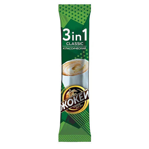 Кофе порционный ЖОКЕЙ "3 в 1 Классический" — это растворимый кофе с классическим сочетанием сахара и сливок.