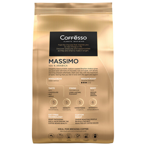 Превосходный бленд из 100% из бразильской арабики средней обжарки подарит наслаждение чистым вкусом с мягкой плотностью и долгим приятным послевкусием. COFFESSO "Massimo" влюбляет в жизнь с новой силой!
