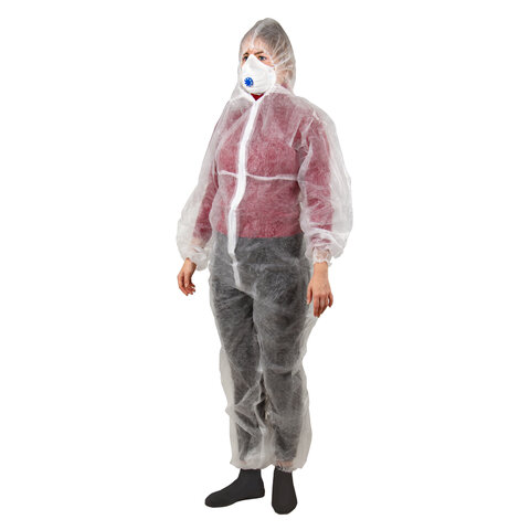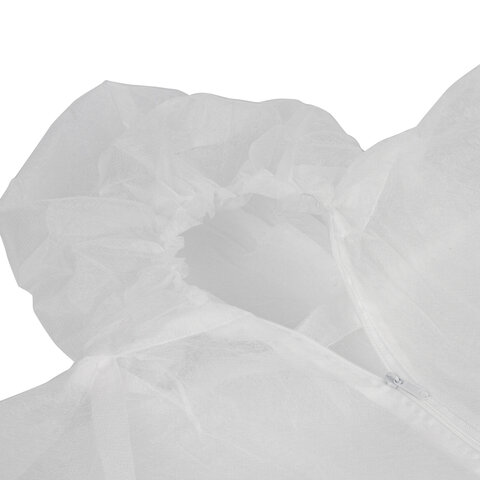 Одноразовый комбинезон из нетканого материала спанбонд с центральной застёжкой на молнию. Рукава и капюшон на резинках, для лучшей защиты от загрязнений рук и головы. Применяются в пищевой, химической промышленности и при работе с красящими веществами.