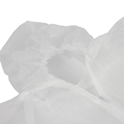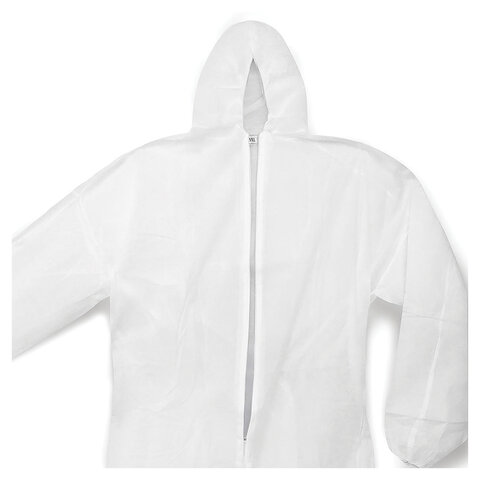 Одноразовый комбинезон из нетканого материала спанбонд с центральной застёжкой на молнию. Рукава и капюшон на резинках для лучшей защиты от загрязнений рук и головы. Применяются в пищевой, химической промышленности и при работе с красящими веществами.