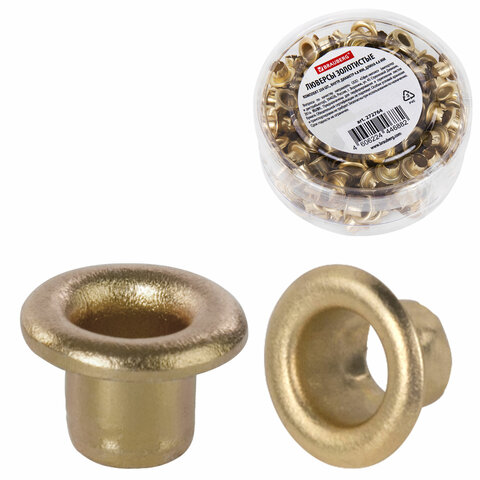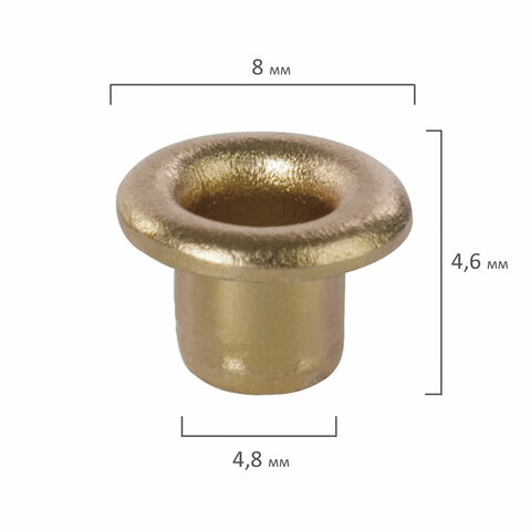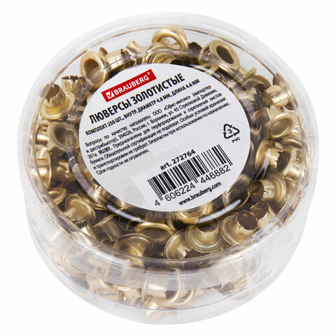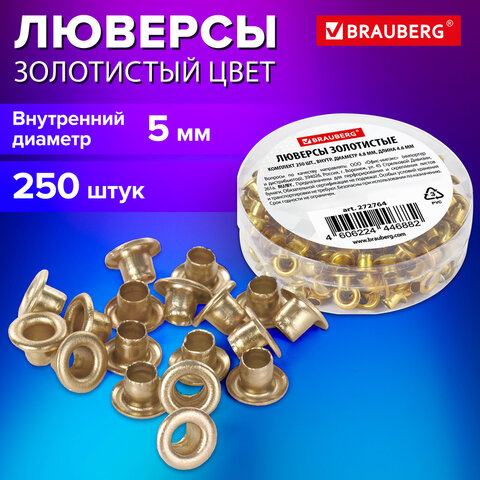 Люверсы золотистые КОМПЛЕКТ 250 шт., внутренний диаметр 4,8 мм, длина 4,6 мм, BRAUBERG, 272764