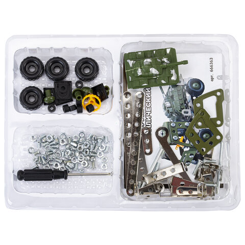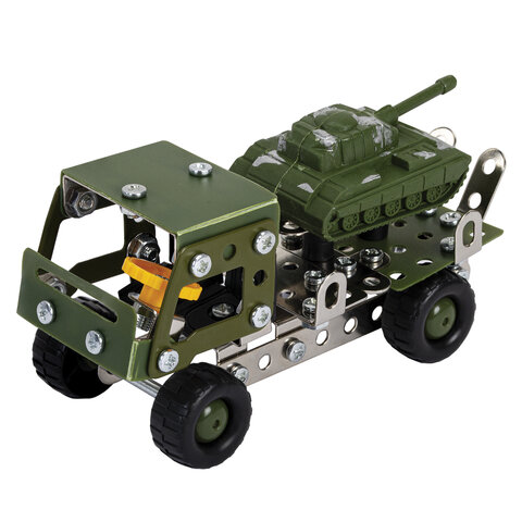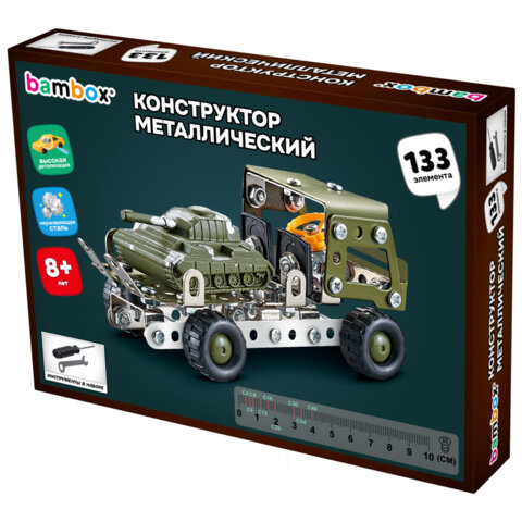 Металлический конструктор BAMBOX "Грузовик с танком" – развивающая игрушка для детей старше 8 лет. Конструктор идеально подходит для домашних игр и занятий на уроках труда. Способствует комплексному развитию ребёнка.
