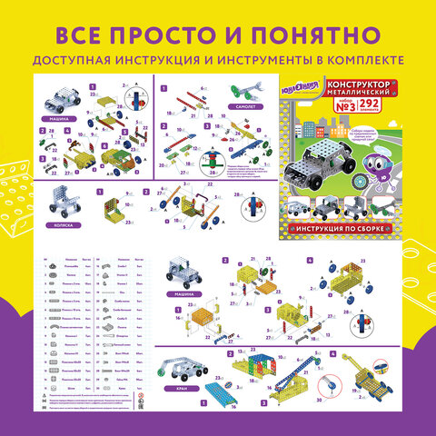 Металлический конструктор ЮНЛАНДИЯ позволяет ребенку в игре развивать логическое и абстрактное мышление, мелкую моторику рук, внимательность и фантазию. Прекрасно подходит для уроков труда в школе.