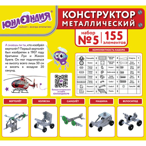 Металлический конструктор ЮНЛАНДИЯ – прекрасный подарок для ребенка старше 6 лет. Набор отлично подходит для уроков труда, также может быть актуален и для частного домашнего использования.