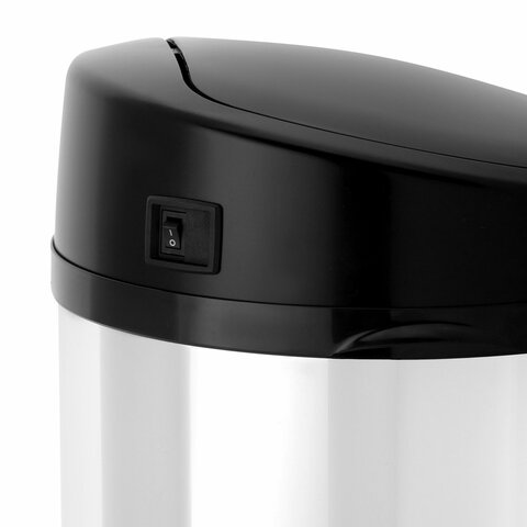Ведро для мусора СЕНСОРНОЕ 12 л, нержавеющая сталь, черная матовая крышка, питание от 4-х батареек AA (не входят в комплект), LAIMA, 609326