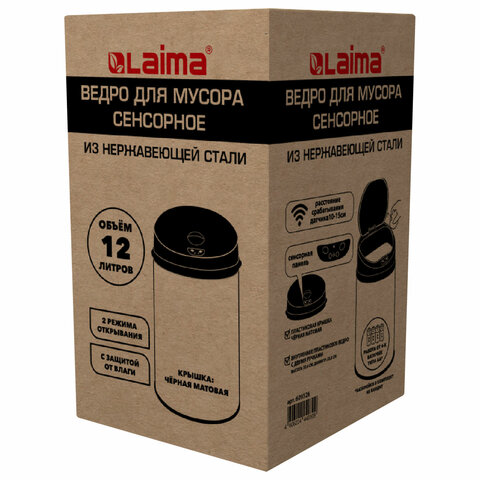 СЕНСОРНОЕ ведро для мусора LAIMA предназначено для сбора бытовых отходов. Бесконтактный режим открывания крышки – очевидное преимущество в условиях большого скопления людей. Поможет поддержать порядок и чистоту в помещении. Незаменимо для офиса!