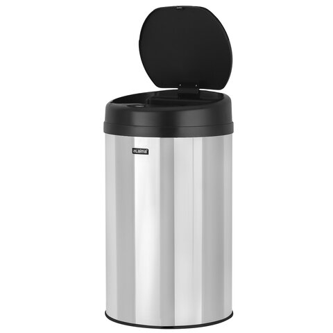 Ведро для мусора СЕНСОРНОЕ 30 л, нержавеющая сталь, черная матовая крышка, питание от 4-х батареек AA (не входят в комплект), LAIMA, 609328