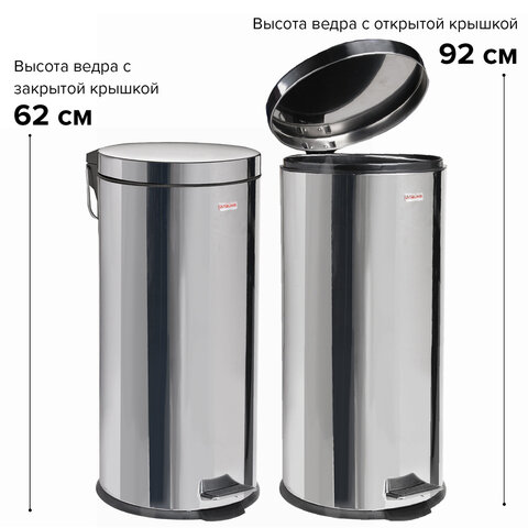 Ведро мусорное с педалью 30 литров "Classic", ЗЕРКАЛЬНОЕ, нержавеющая сталь, со съемным внутренним ведром, LAIMA, 232263