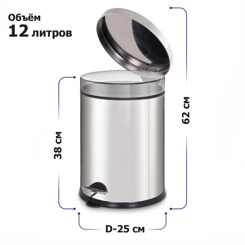 Ведро мусорное с педалью 12 литров "Classic Plus", ЗЕРКАЛЬНОЕ, нержавеющая сталь, со съемным внутренним ведром, LAIMA, ТУРЦИЯ, 608113