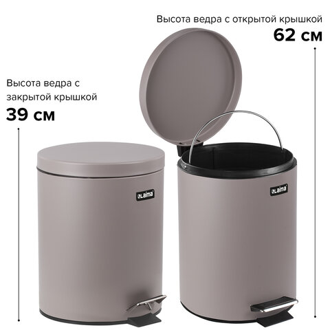 Ведро мусорное с педалью 12 литров "Classic", СЕРОЕ МАТОВОЕ, металлическое, со съемным внутренним ведром, LAIMA, 604944
