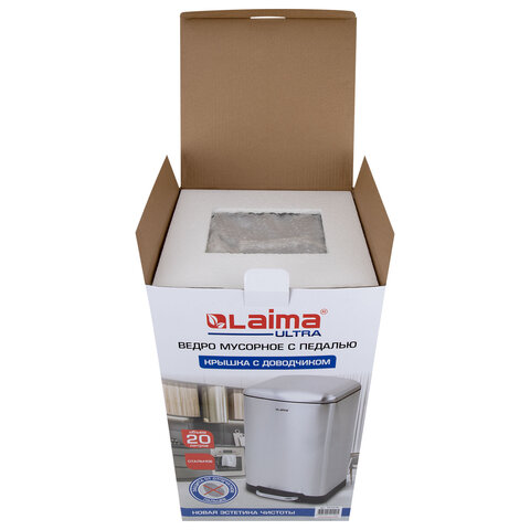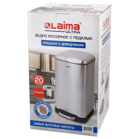 Ведро мусорное с педалью 20 л, крышка с доводчиком, стальное, БЕЗ ОТПЕЧАТКОВ, LAIMA ULTRA, 701570