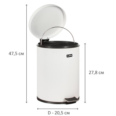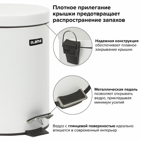 Ведро мусорное с педалью 5 литров "Classic", БЕЛОЕ ГЛЯНЦЕВОЕ, металлическое, со съемным внутренним ведром, LAIMA, 604947